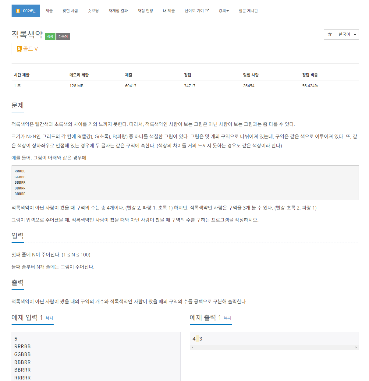 [ 그래프 이론-10026 ] 적록색약(Python) 본문