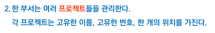 두번째 요구사항에서는 프로젝트 Entity가 새롭게 등장한다. 프로젝트 Entity는 이름, 번호, 위치 Attribute를 가지며, 이름과 번호는 Primary Key 이다.