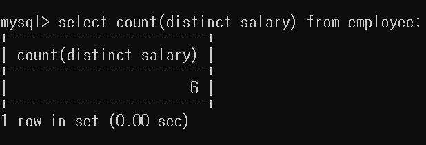 - 중복되지 않은 salary 값이 몇 개인지 검색하시오