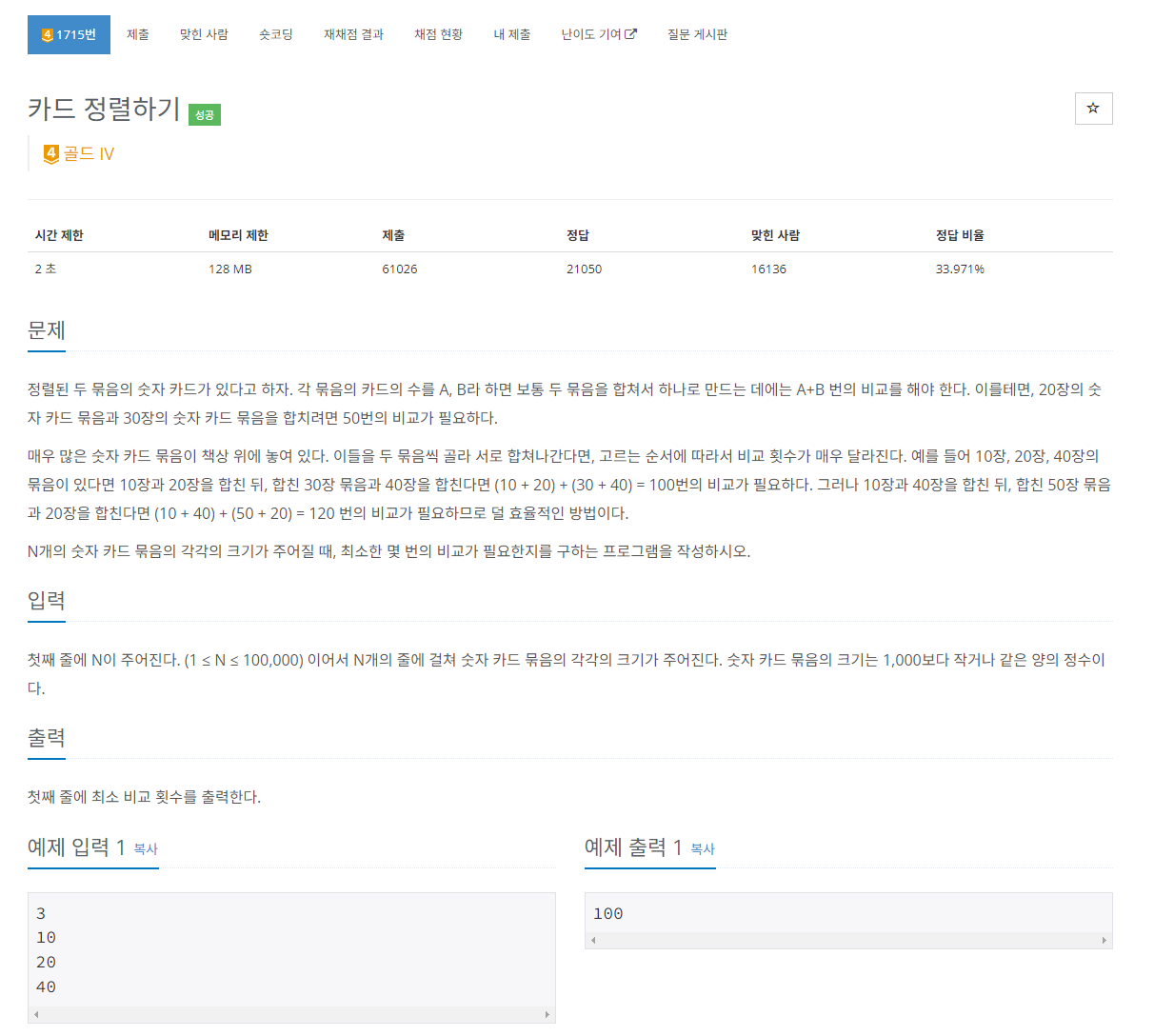[ 자료구조-1715 ] 카드 정렬하기(Python) 본문