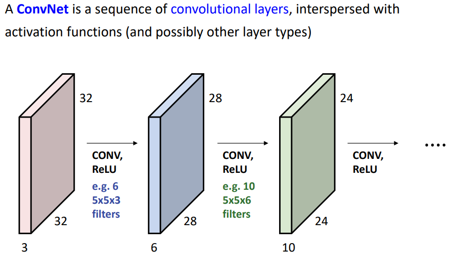 이처럼 ConvNet은 Convolutional Layers의 sequence라고 표현할 수 있다.