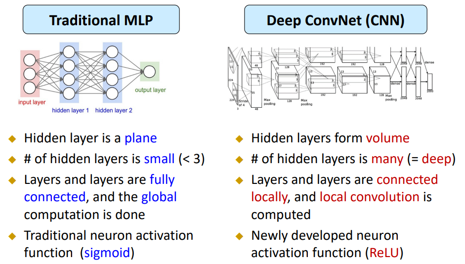앞으로 살펴볼 CNN(=ConvNet)은 MLP와 차이가 있다.