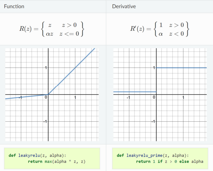 LeakyReLU의 경우 $z \leq 0$의 범위에서 역시 Gradient가 존재하는 특징이 있다.