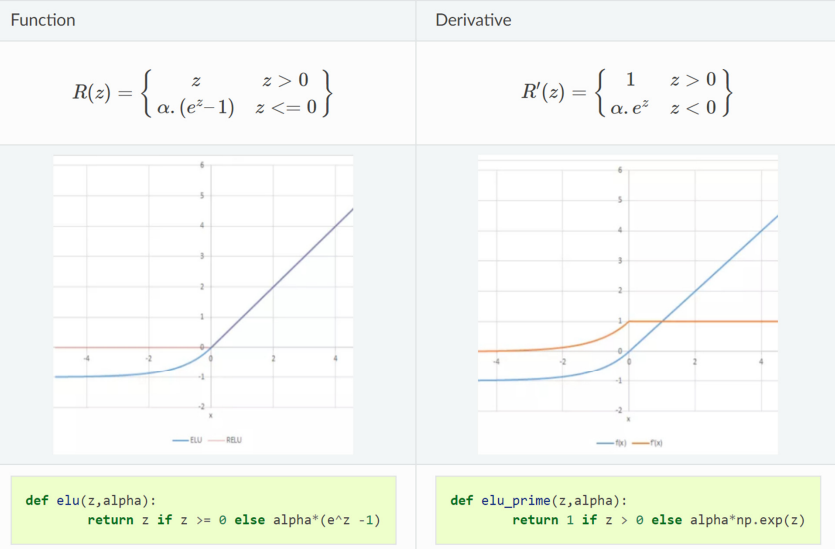 ELU는 LeakyReLU에서 여전히 존재하는 0에서의 미분 불능을 해소한 Activation Function이라는 정도만 기억하고, $ z \leq 0$에서의 함수의 구조만 파악하고 넘어가자.