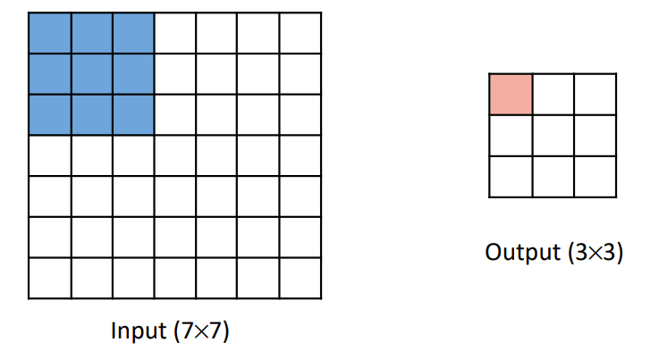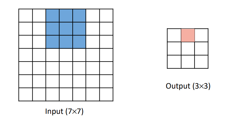 이처럼 하나의 Output Pixel에 영향을 주는 Input에서의영역을 Receptive Field라고 한다.