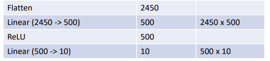 다음 Conv Layer로 들어오는 Input Size는 20x14x14가 된다. 따라서 K가 5인 각 Kernel의 크기는 20x5x5가 된다. Convolution 연산은 Input에 대하여 수행되기에 각 Kernel의 Depth는 Input의 Depth와 동일해야 함을 생각하면 된다. 해당 Convolution 연산 역시 P는 2, S는 1이므로 동일하게 Output Size는 14x14로 유지하게 된다. 하지만, Kernel이 총 50개이므로 최종적인 Output은 50x14x14가 되고 Weight는 50x20x5x5개가 발생한다.