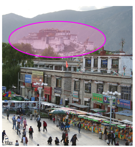 왼쪽 사진에 대하여 원형으로 표현된 객체가 Potala Palace(특정 Class 예시)에 속하는지 검증하는 것이 Verification이다.