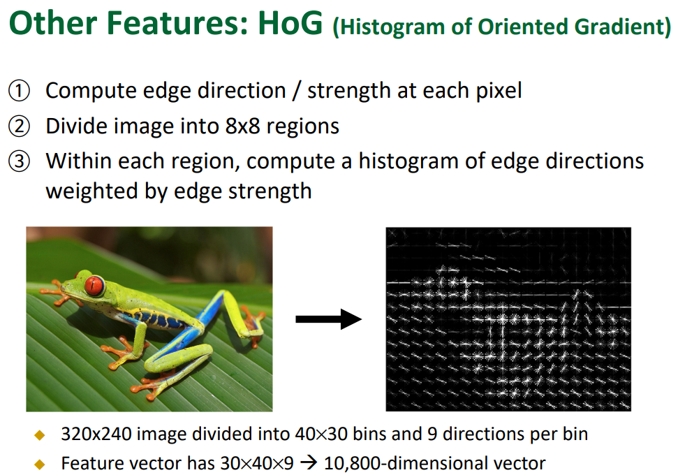 또다른 Feature는 HoG 즉, Gradient 방향의 Histogram이 있다. 영상이 달라지면 결국 Gradient의 분포 역시 달라지기에 하나의 Feature가 된다.