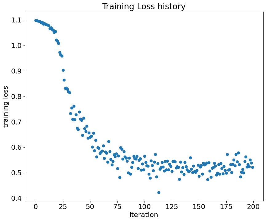 print('Final training loss: ', stats['loss_history'][-1])
