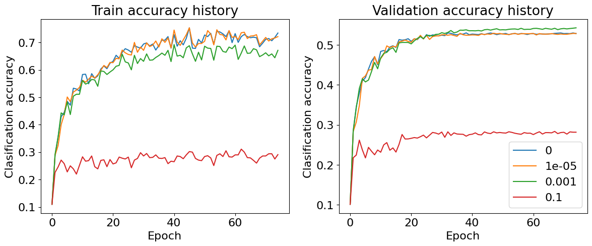 regularization_strengths = [1e-6, 1e-5, 1e-4, 1e-3]