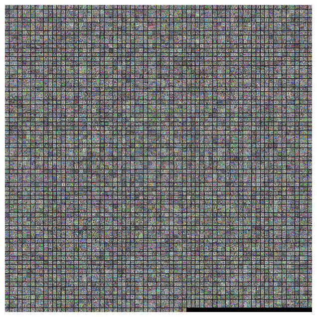 Network의 첫번째 Layer의 Weight Matrix는 Edge나 Corner등 시각적인 특징이 예상되나, 아래 Weight를 시각화 한 경우 무작위적인 패턴처럼 보인다. 이는 모델이 데이터를 제데로 학습하지 못함을 의미한다.