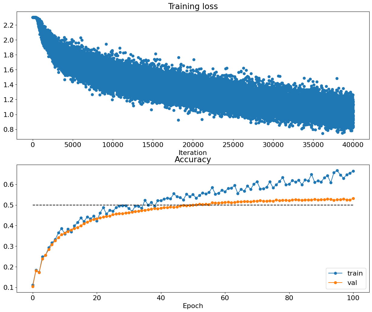 (Epoch 100 / 100) train acc: 0.665000; val_acc: 0.532300