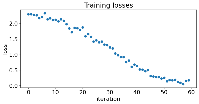 model = ThreeLayerConvNet(dtype=torch.float64, device='cuda')