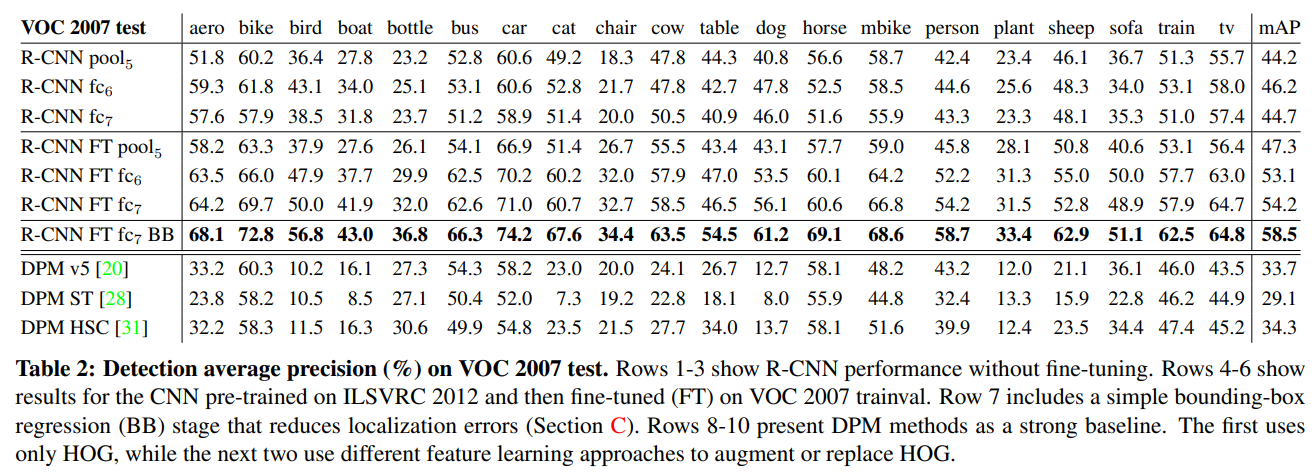 Feature based Model인 DPM 시리즈와의 성능 비교를 한 결과, 모든 R-CNN Models가 압도적인 성능을 보임을 확인할 수 있다.