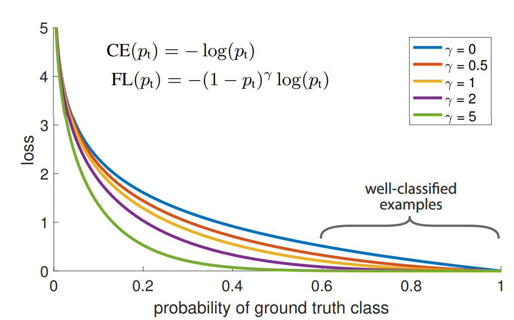 $$FL(p_t) = -(1-p_t)^\gamma log(p_t)$$