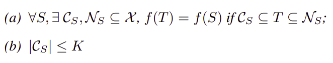 특정한 두 부분집합 $C_S, N_S$에 대해서, 두 부분집합 사이의 점들로 구성된 경우 신경망의 출력에 차이가 없음을 의미하며, 이때, $C_S$의 크기 즉, 중요한 점들의 개수는 $K$보다 크지 않음을 의미한다.