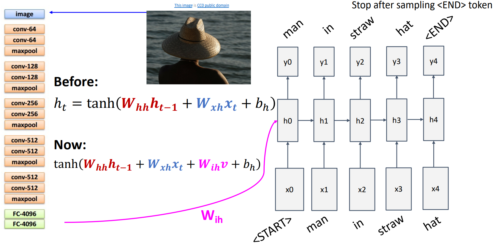 $$tanh(W_{hh}h_{t-1} + W_{xh}x_t + W_{ih}v + b_n)$$