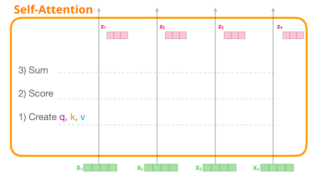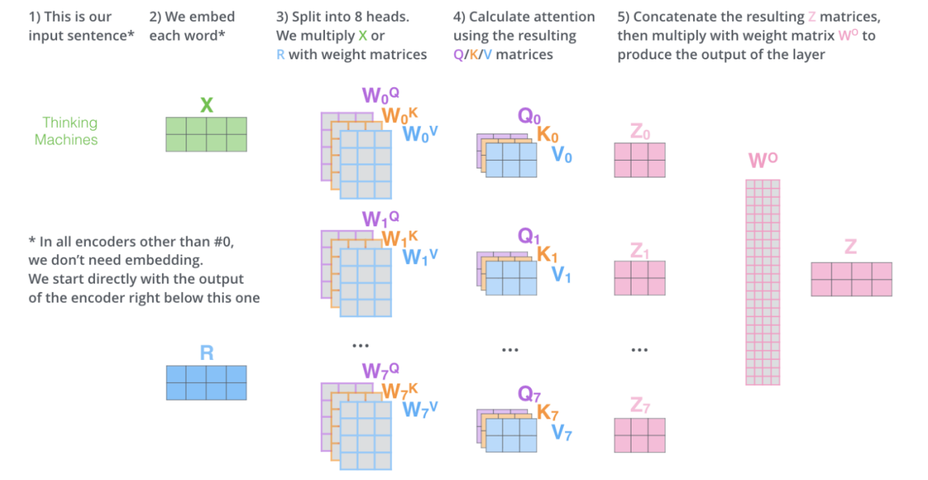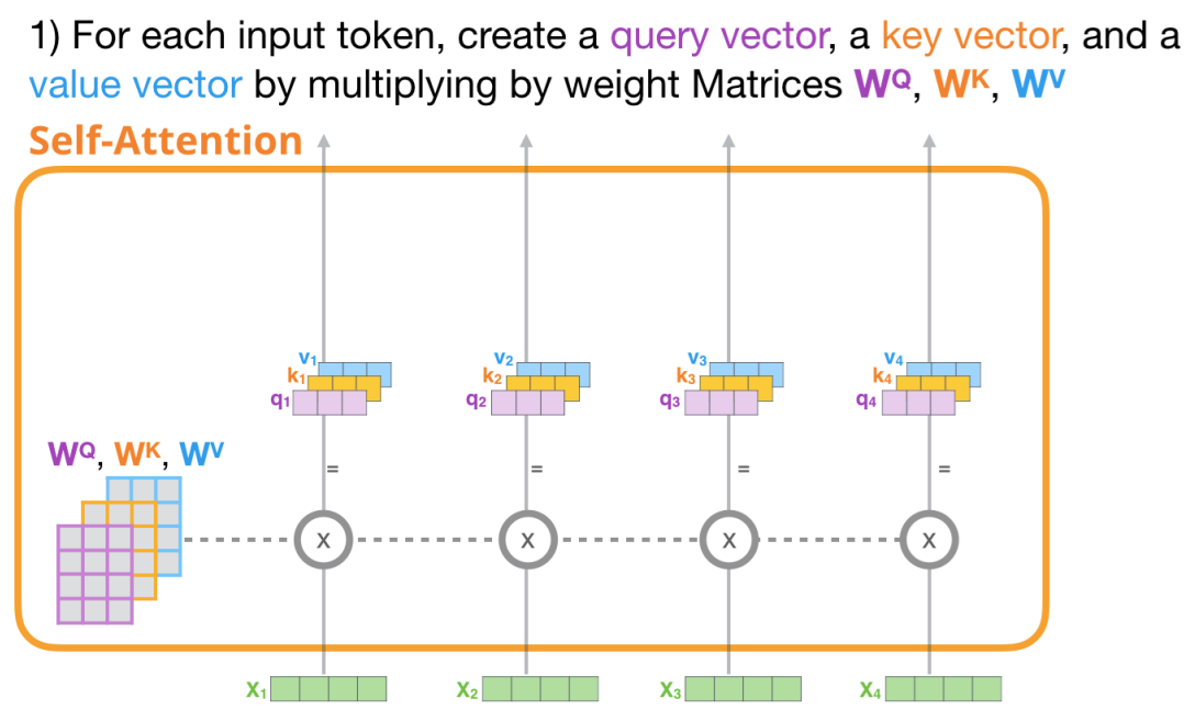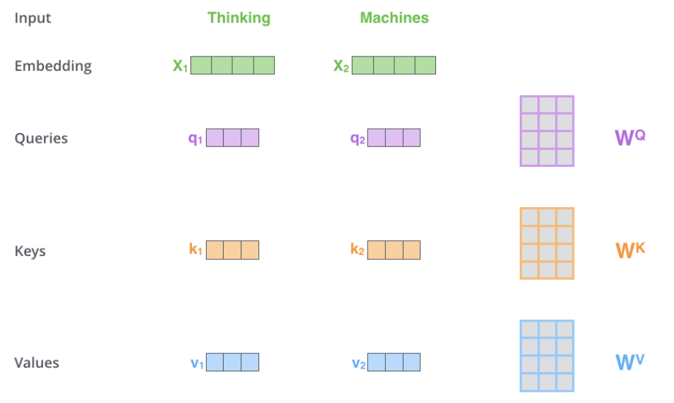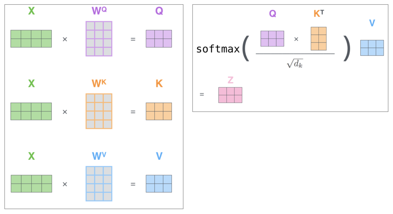 Q,K,V Vector를 계싼하는 과정은 Matrix Multiplication을 통해 계산된다.