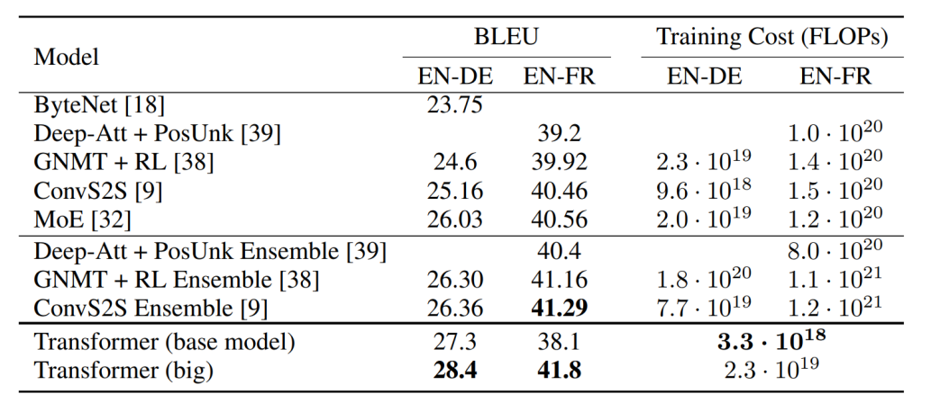 다른 Model에 비해, Transformer가 월등한 성능을 보임을 확인할 수 있다.