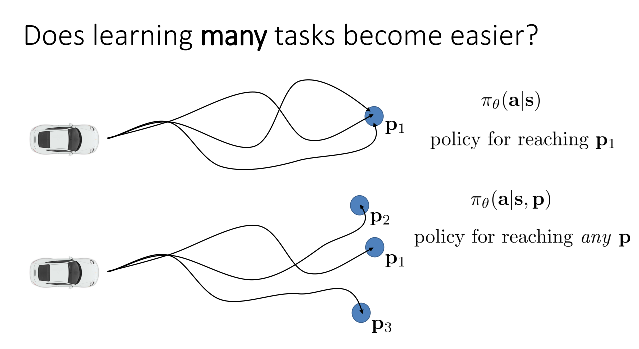 만약에 $p_1$으로 가야하는 1가지 Task만 수행하게 된다면, 최적 경로만 고려했을 때, 해당 경로를 벗어나는 다양한 state를 볼 수 없게 된다. 이는 작은 mistake가 큰 error로 이어지는 결과로 이어질 가능성이 높다.