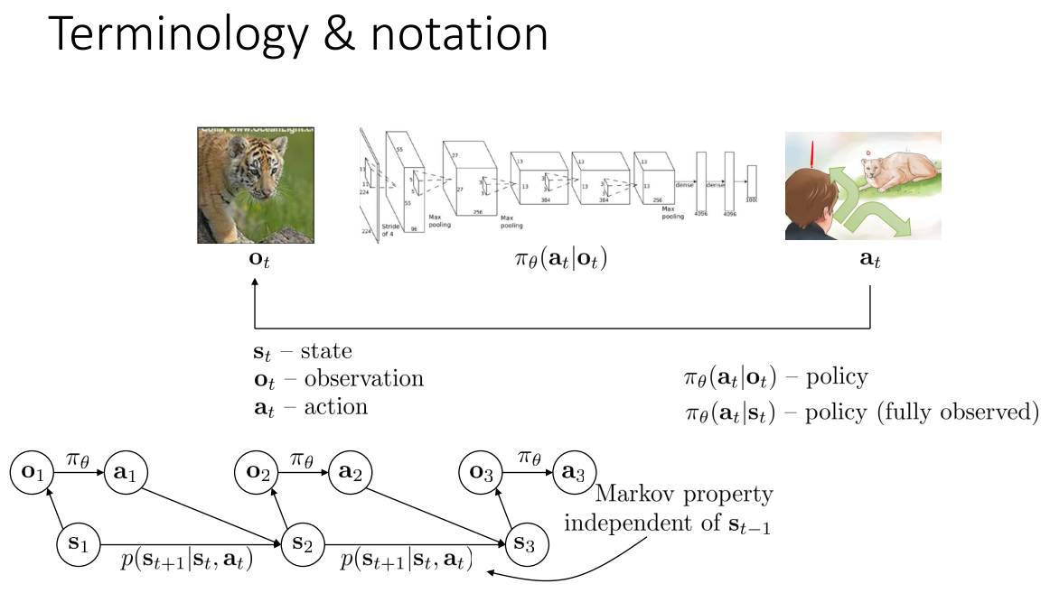 지난 강의에서도 강조한 것 처럼, Observation $o_t$와 State $s_t$는 항상 다름을 유의하자. 예를 들어, 차량의 전방 카메라 영상이 Observation이라면, 차량의 속도, 방향, 위치 등의 모든 상태 값이 State이다.