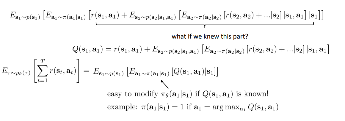 따라서 우리는 Expectation of total reward를 Q function을 이용해 재정의할 수 있다.