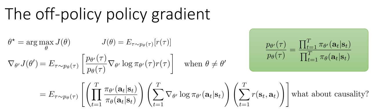 이러한 수학적 개념을 가지고 Off-Policy Policy Gradient를 다시 한번 살펴보자. 데이터를 생성한 Parameter