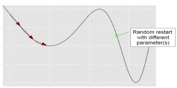 또한, 아래와 같이 global minima가 아닌 locat minima에 수렴하는 경우도 발생하기에 Initial에 영향을 받는다.