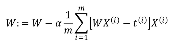 $$ cost(W,b) = \frac{1}{m}\sum_{i=1}^{m} [WX^{(i)}-t^{(i)}]^2 $$