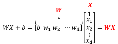 이때, 다음과 같이 bias를 Matrix에 함께 표현하고