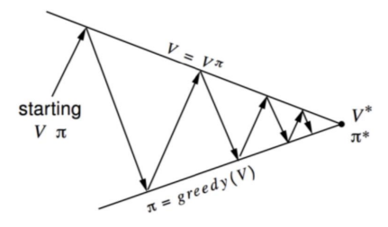 즉, evalution된 특정한 policy에 의해서 수행했을 때의 action-value들의 max가 되는 action을 선택하도록 policy를 바꿔준다. 따라서 Evaluation과 Improvement를 반복하면 최적의 Policy로 수렴함을 알 수 있다.