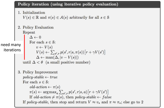 $v_{k+1}(s)$에서는 $v_{\pi}(s')$는 $k+1$의 상황에서 알지 못하는 미래의 값이기 때문에, 이를 iterative하게 해결하기 위해서 $v_k(s')$으로 바꿈으로써 해결할 수 있다.