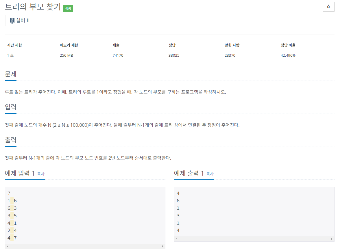 단순히 현재 노드의 부모를 찾는거기 때문에, dfs(),bfs()없이 단순하게 해결할 수 있을 것 같아서 아래와 같이 접근했다.