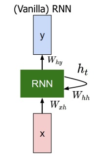 이러한 조건을 충족시키는 RNN의 경우 아래와 같이 표현할 수 있다. 이때, Vanilla는 "원초적인"이라는 의미로 가장 기본적인 RNN임을 의미한다.