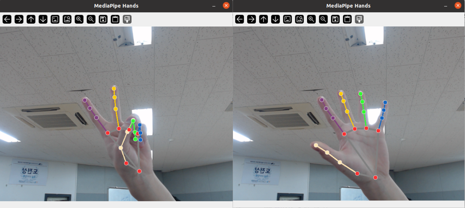 단순히 엄지, 검지, 손바닥 가장자리 젤 아래 랜드만크만을 이용해서 각도를 계산하고 판단하기에는 x,y,z 다 고려해야 하기 때문에 조금 다른 방법을 찾아야 할 것 같다.