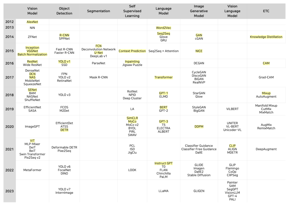형광색 표시가 된 논문은 해당 기법을 대표하거나 전체 흐름을 바꾼 논문으로 필수적으로 읽어야 하는 논문이다.