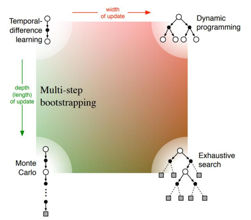 앞으로 배울 TD는 DP의 Bootstrapping과 MC의 Sampling의 특성을 모두 지닌 Method로 모든 state에 대해서 진행하기 힘들기 때문에 sampling 된 특정 State에 대해서만 bootstrapping 방식을 적용하여 state-value를 update 한다.