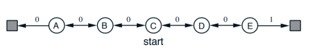 0.5의 확률로 좌/우로 움직이고, $\gamma = 1$을 가정하자. 또한, terminal state는 양 끝에 존재하고, 오른쪽 끝 terminal state로 가는 return만 1이고 나머지는 0이다. 즉, 각 state에서의 state-value는 오른쪽 terminal로 가는 확률로 계산되는데, 이는 state-value가 reward의 sum이고 현재 discount factor가 1이기 때문이다.