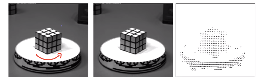 Motion Field는 3D 공간 상에서 포착되는 모든 물체의 움직임이 이미지에 투영되는 이상적인 표현이다. 즉 움직임이 발생한 모든 점의 변화를 벡터로 얻어낸 2차원 모션 맵이라 할 수 있다. 위 예시처럼 움직이는 픽셀 정보에 대하여 추정이 가능하다.