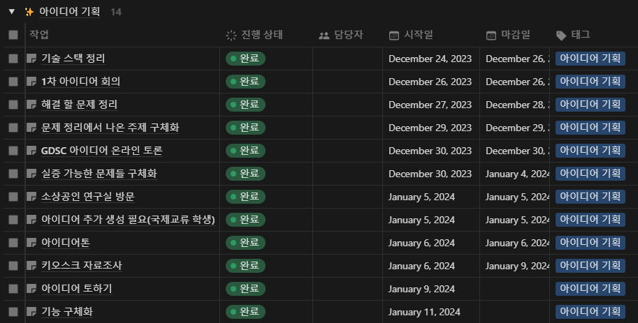 이처럼 주제가 한번 정해졌다고 최종으로 갈 확률은 없고, 해당 주제의 타당성과 필요성을 입증하는 과정도 매우 중요하기에 아이디어 기획 단계에서 많은 생각과 정리를 한다면 이후 단계는 수월하게 진행 될 것이다.