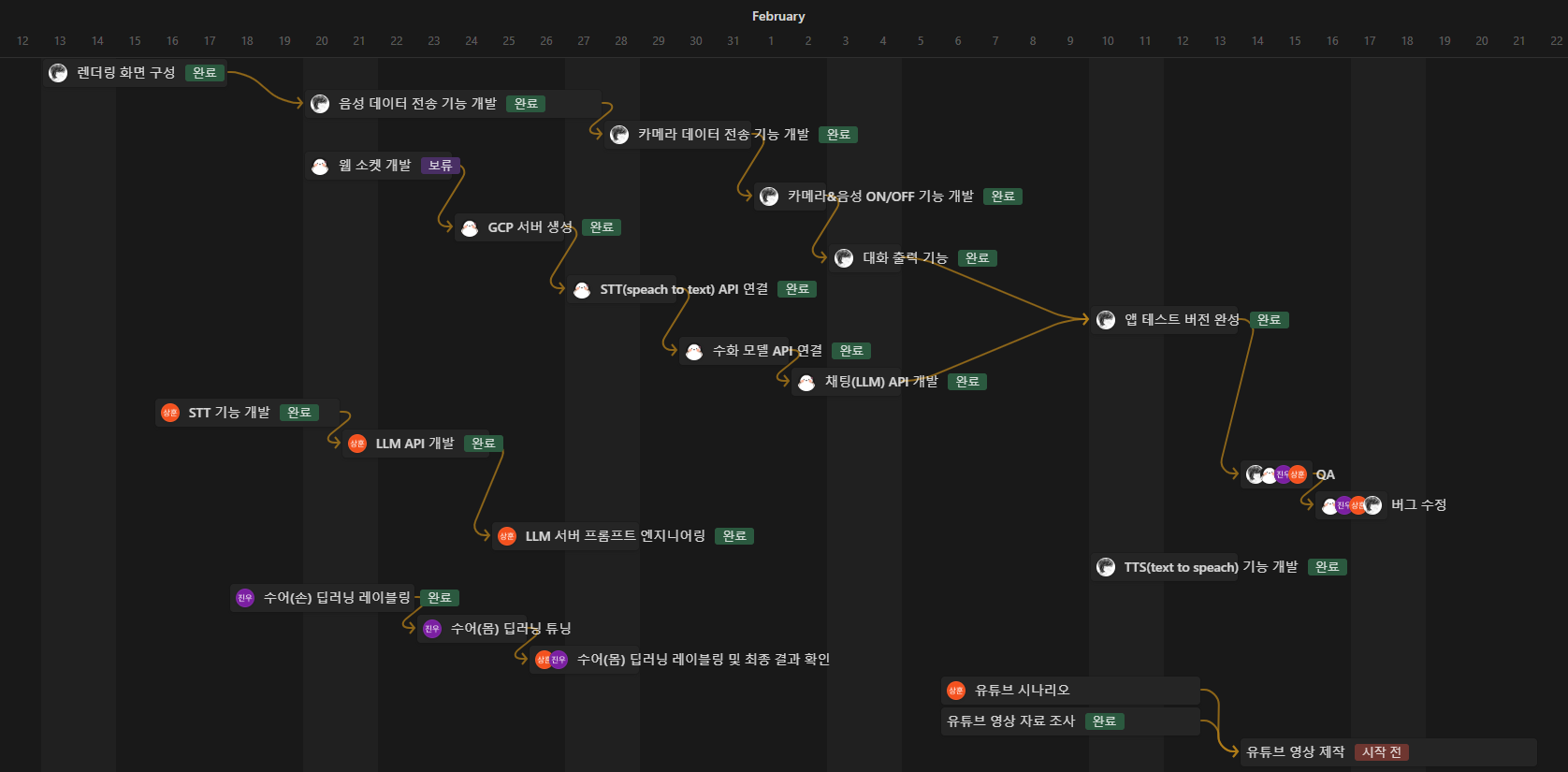 나는 ML 분야이기 때문에 본 프로젝트에서는 수화 인식 모델 개발을 주로 하였다. 단순한 이미지 내에서 객체 인식이 아닌 수화를 인식해야 하기 때문에 시계열 모델이 요구되었다. 또한, 수화를 인식하기 위해서는 이미지 내에서 사람의 손동작, 몸짓, 표정을 인식하여 분석해야 하기 때문에 이를 위한 작업도 요구되었다.