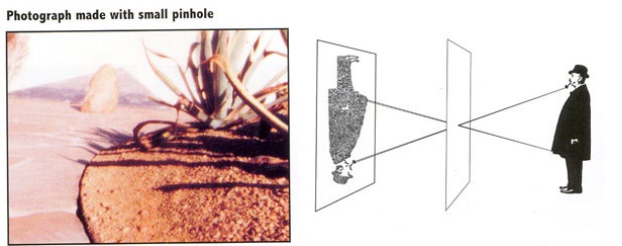 핀 홀 카메라 모델은 왼쪽 사진과 같이 빛이 하나의 구멍을 통해 들어와 반대편에 도립 상이 맺히는 모델이다. 렌즈 모델은 오른쪽 사진과 같이 렌즈를 통해 들어온 빛이 반대편에 도립 상을 만드는 모델이다. 두 모델에 차이는 빛의 양에서 발생하는데, 렌즈 모델이 상대적으로 더 많은 빛을 모을 수 있기 때문에 더 밝은(명확한) 상이 맺힘을 확인할 수 있다. 따라서 만약, Image Plane이 앞으로 오게 된다면 한 점에 대한 빛이 분산되어 흐릿해 질 수 있다(초점의 변화가 발생).