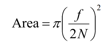 조리개가 열려있는 구멍의 넓이는 위 식으로 계산되는데, 이때 $\frac{f}{N}$ 은 조리개의 직경을 의미한다.
