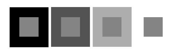 위 사진에서 주변 배경에 따른 상대적 밝기 인식을 알 수 있는데, 첫번째 사진보다 마지막 사진의 사각형이 더 어둡게 보인다. 이는 주변 인접한 영역의 색상 차이가 마지막이 더 크기 때문이다. 이를 Psychovisual Effects라 한다.
