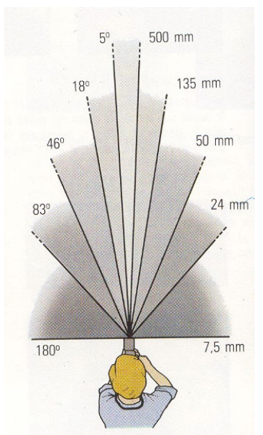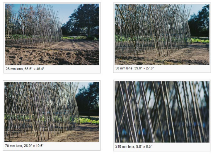 즉, 같은 피사체에 대하여 초점거리가 긴 망원렌즈일수록 크고 좁은 범위가, 초점거리가 작은 광각렌즈일수록 작고 넓은 범위가 촬영된다.