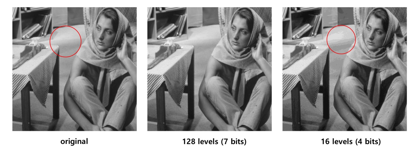 하지만, 비트 수가 감소한다면 부드러운 밝기 변화가 끊겨 보이는 현상이 발견된다.