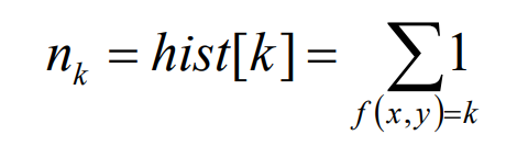 기본적인 수식은 설명한 것과 같이 각 Intensity에 해당하는 화소의 개수를 계산한다고 생각하면 된다.