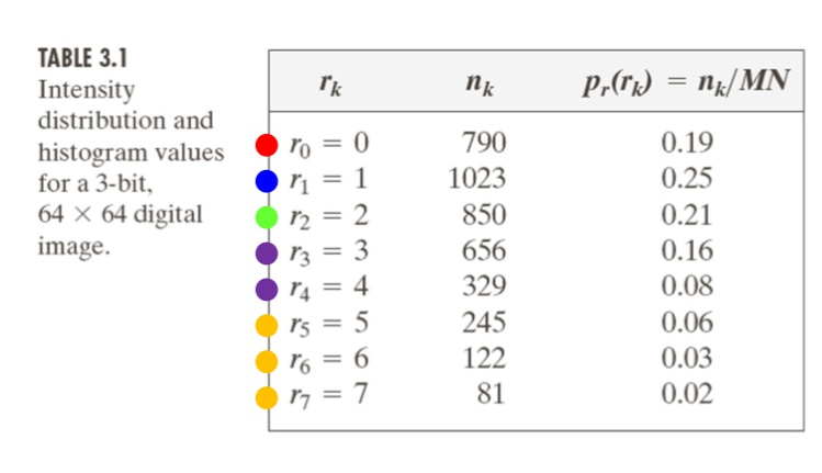 한 전체 픽셀 수는 64*64로, MN = 4096이다. 따라서 $r_k$는 각 픽셀의 Intensity, $n_k$는 각 Intensity에 해당되는 화소 갯수이다.