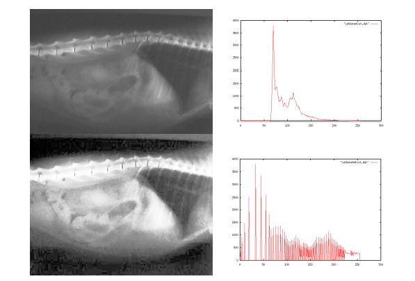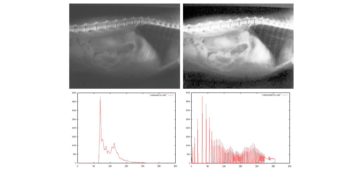 왼쪽 사진을 보면 Maximum Value만 가운데에 매우 크고, 나머지 부분은 매우 작은 범위 내에서 Pixel Value를 가짐을 알 수 있다. 즉 어두운 값에서도 차이가 존재하지만, Maximum Value가 상대적으로 매우 크기 때문에 밝은 값과 대비되어 잘 보이지 않는다.
