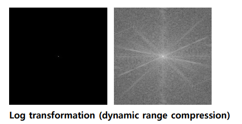 화소 밝기에 로그를 씌워 로그 스케일을 적용하는 영상 처리 기법.